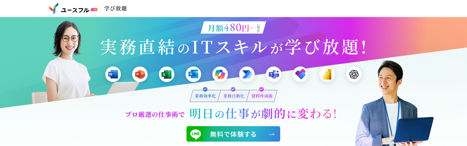 そんな方にはユースフルの公式LINEがオススメです!元伊藤忠商事経理でExcel実務のプロ、長内孝平(おさ)が運営しており